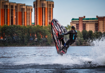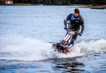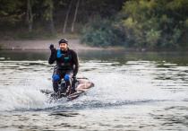 Принцип езды на стоячем гидроцикле (аквабайке) точно следует из названия.